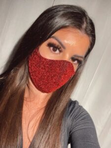 A estilista Fernanda Baião que trabalha com vestido de festas, ingressou no comércio de confecção de máscaras e disponibiliza máscaras luxuosas e cheias de glamour. São máscaras de aplicações, bordados e tecidos brilhantes.