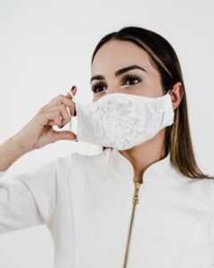 As máscaras de renda são elegantes e belíssimas. Mas é preciso se atentar para um fator: é preciso um forro seguro por baixo da mesma. Com a máscara de renda, você dará um ar sofisticado e discreto ao visual.