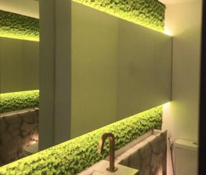 Os musgos estabilizados nos permitem uma infinidade de aplicações como por exemplo, criar desenhos em paredes, pisos e tetos, fazer logomarcas verdes, usar em composições com móveis de tv, varandas, cozinhas e banheiros, revestir pilares e o que mais a imaginação permitir, até porque além de sua beleza estética, são hipoalergênicos  e são extremamente eficientes em relação ao isolamento sonoro de alto nível e ajudam a purificação do ar dos ambientes. Com todas essas qualidades fica fácil entender porque amamos tanto esse musguinho!