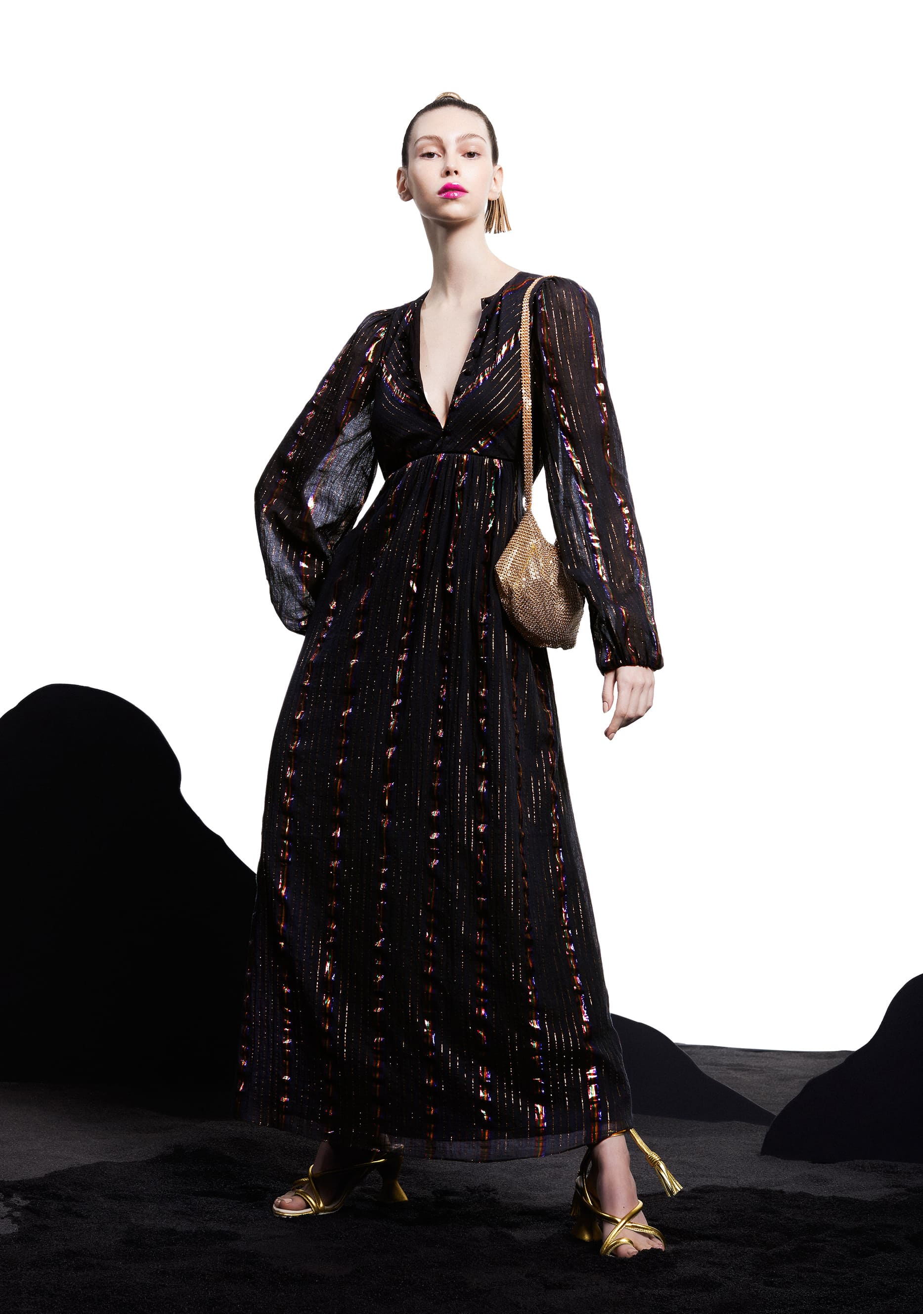 Com peças que unem modelagens construídas com leveza a um universo particular repleto de referências inspiradoras, a coleção é marcada por tecidos nobres, um brilho único e joias exclusivas, gerando itens que são característicos de uma moda genuína e singular, com peças despretensiosamente atemporais e autorais.