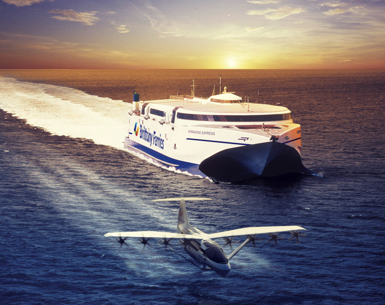 Com capacidade para transportar de 50 a 150 passageiros, a companhia marítima Brittany Ferries, principal transportadora marítima no canal ocidental e central, apresentou um novo conceito de embarcação 100% elétrica que funciona como um hidrofólio, mas voa como um avião.