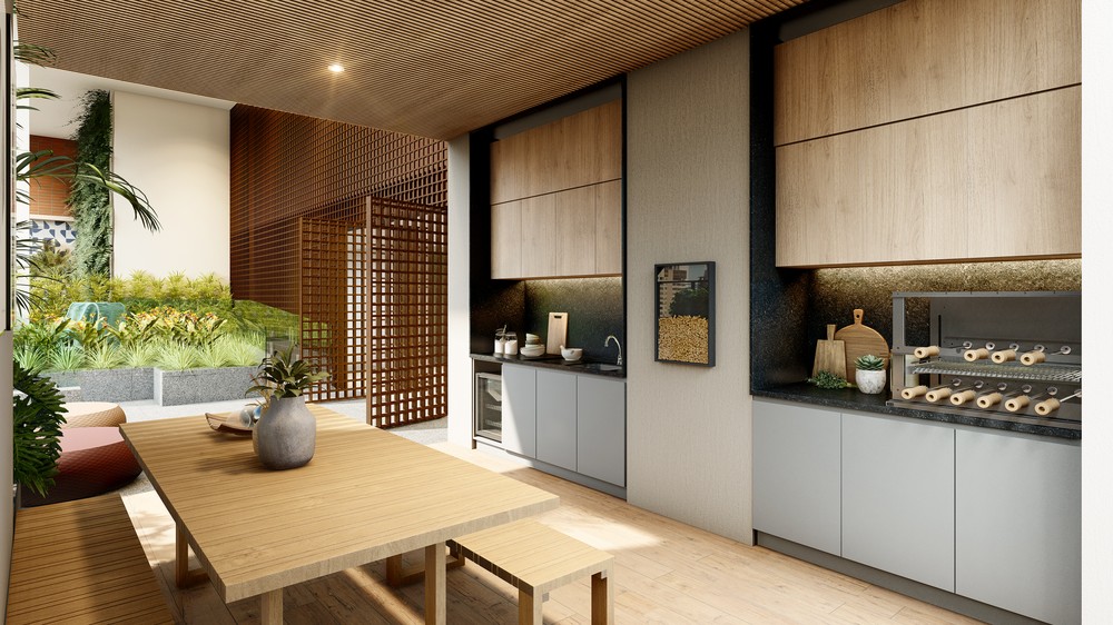 A parte de lazer também tem novidades exclusivas. São dois ambientes diferentes para os moradores aproveitarem. No mezanino, há um espaço mais voltado para os moradores curtirem com suas famílias, e inclui salão de festas com projeto de design incluso, piscinas para todas as idades, salão de jogos e churrasqueira. Já o rooftop apresenta um grande e privativo espaço gourmet para a realização de eventos e uma piscina com vista panorâmica da cidade.