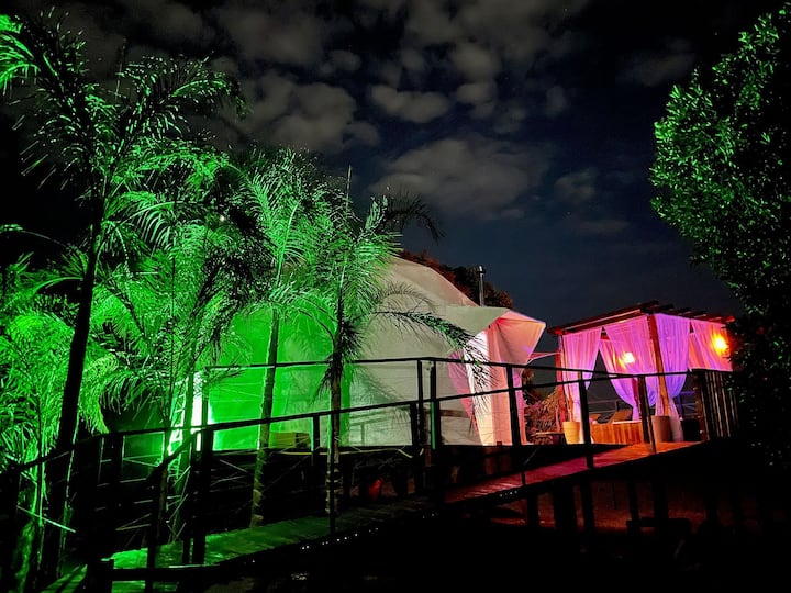 Disposto especificamente na estância de casas de veraneio a sete quilômetros da cidade, Shambala Piri, o acampamento foi nomeado como Olho do Dragão Mountain House, estando a dois metros do chão e possuindo mais de 100 metros quadrados, composto por uma tenda geodésica com área interna de 38 metros quadrados revestida com lona especial, calefação interna, ar condicionado, amenities e blends.