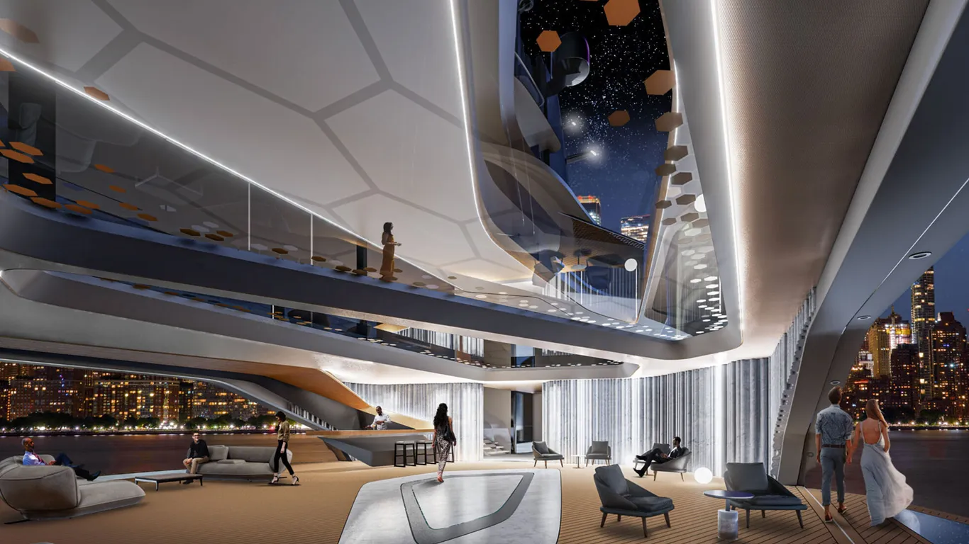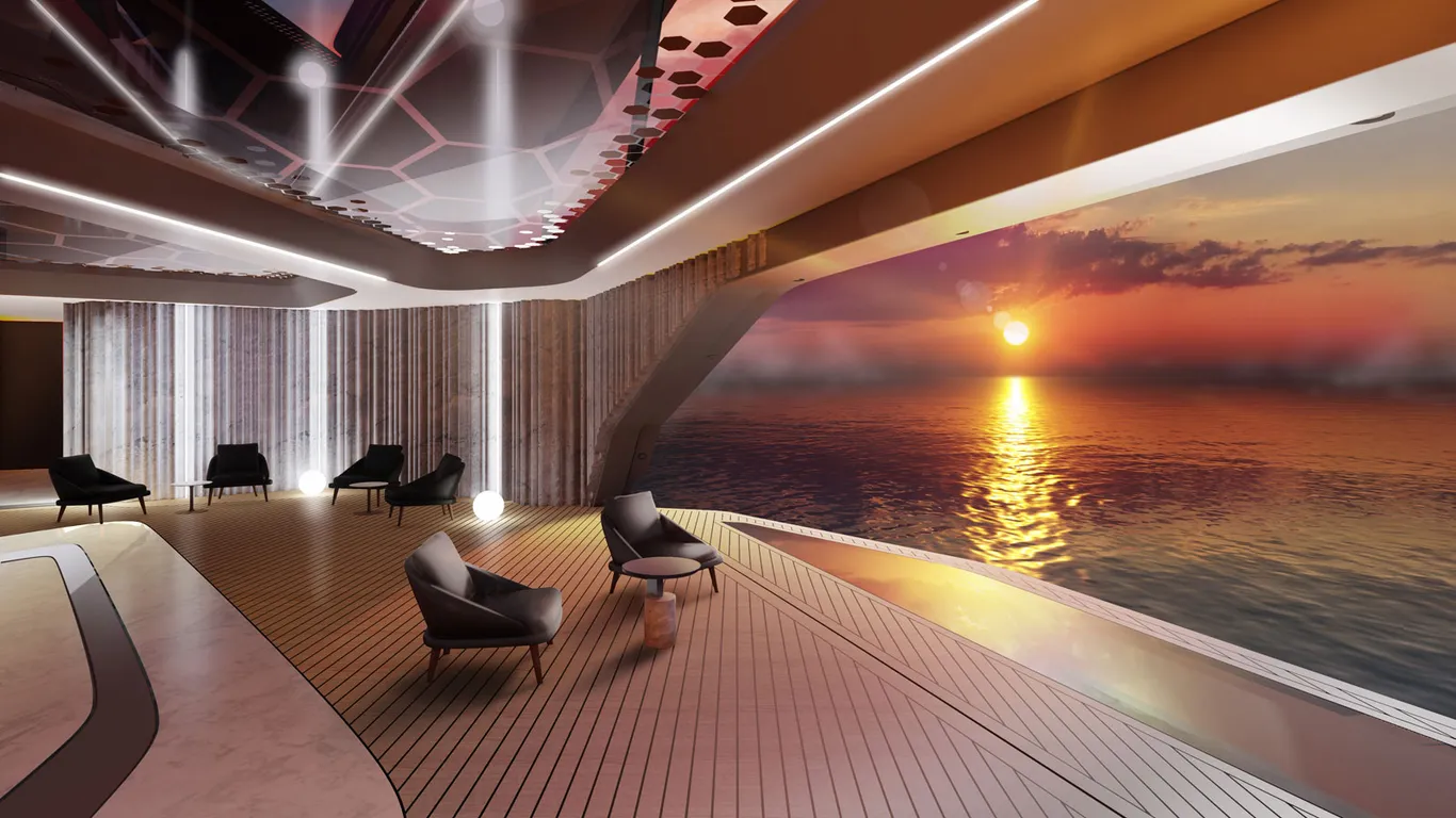 O espaço se adapta a todos os desejos do proprietário e seus convidados, com o iate sendo desenvolvido verticalmente em três níveis, rompendo com o formato de design convencional, com formas assimétricas, estruturas transparentes e falta de barreiras físicas.