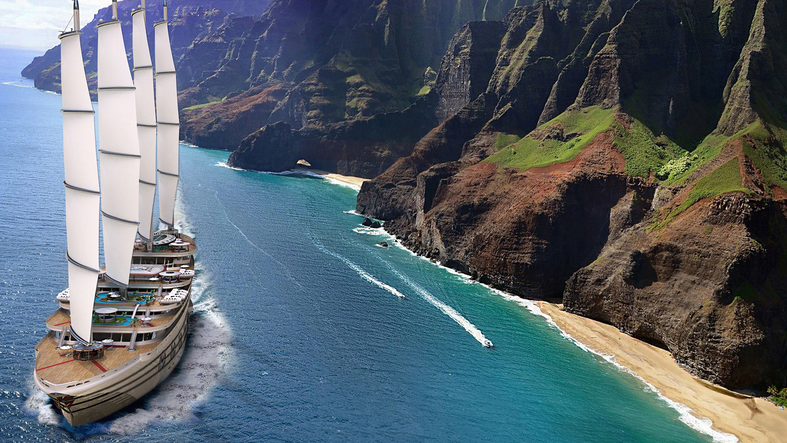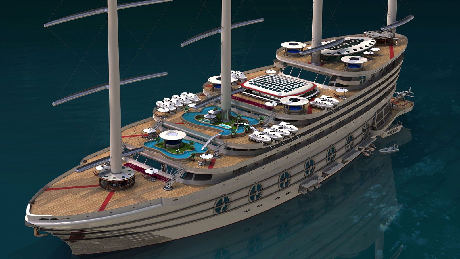 Com uma fachada imponente de vários deques e quatro mastros elevados, o designer norte-americano Steve Kozloff apresentou mais um de seus projetos, um veleiro diferente e inspirado nos barcos a vela da Armada Espanhola, reunindo modernidade e tradição.