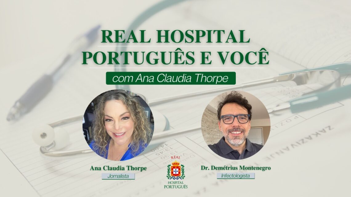 Matérias Real Hospital Português e Você com Ana Claudia Thorpe – Dr Demétrius Montenegro (Infectologista) 14/01/2022 / Comentários desativados em Real Hospital Português e Você com Ana Claudia Thorpe – Dr Demétrius Montenegro (Infectologista) Confira um trecho do Real Hospital Português e Você com Ana Claudia Thorpe, desta vez com a participação do infectologista, Dr Demétrius Montenegro.