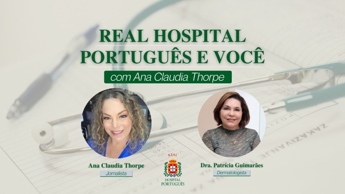 Matérias Real Hospital Português e Você com Ana Claudia Thorpe – Dra Patrícia Guimarães (Dermatologista) 14/01/2022 / Comentários desativados em Real Hospital Português e Você com Ana Claudia Thorpe – Dra Patrícia Guimarães (Dermatologista) Confira um trecho do Real Hospital Português e Você com Ana Claudia Thorpe, desta vez com a participação da dermatologista, Dra Patrícia Guimarães.