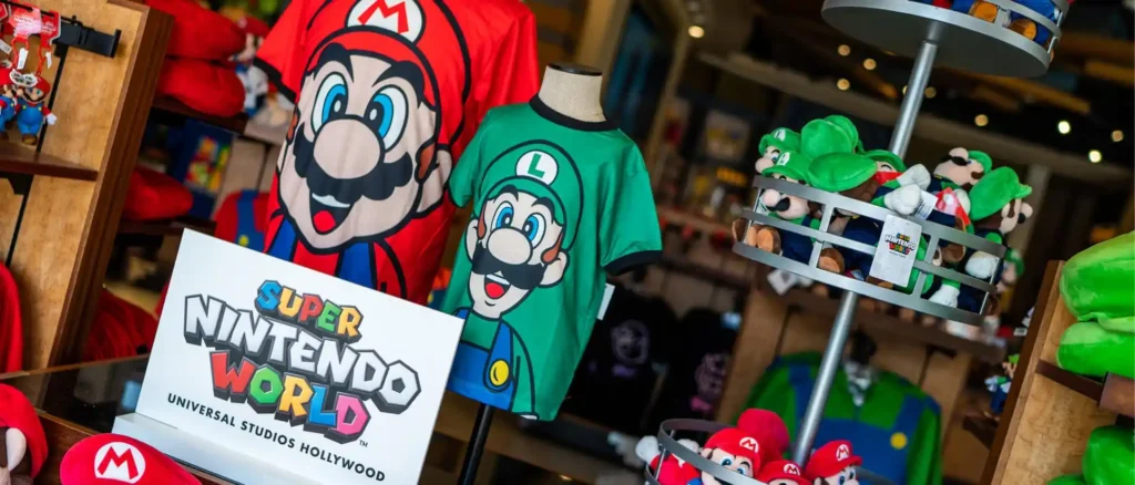 Logo na entrada principal do parque temático, os visitantes poderão se preparar para a chegada da área em 2023 com diversos artigos temáticos, como roupas de Mario e Luigi, e chapéus de personagens icônicos. Uma seleção de personagens de pelúcia, incluindo Yoshi, Mario, Bowser e Luigi, em vários tamanhos, também estará entre os muitos itens divertidos disponíveis para compra. Mais informações e detalhes serão compartilhados em breve e os visitantes podem acessar UniversalStudiosHollywood.com para atualizações sobre o parque temático.