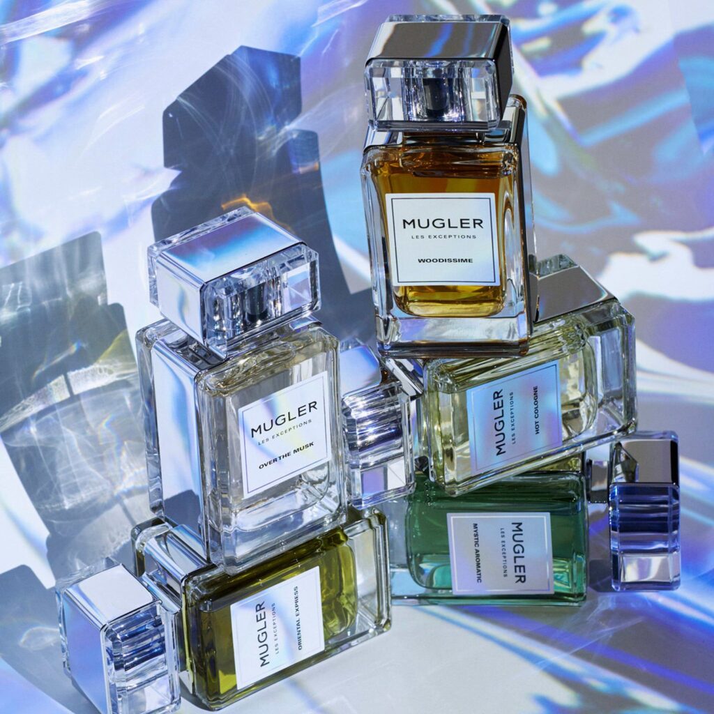 A sensualidade e a beleza angular da bela humanidade que povoou a imaginação de Mugler são entregues a uma dimensão atemporal graças aos seus perfumes. O fascínio de Thierry Mugler pela perfumaria se materializou no início dos anos 90, quando a moda não era mais suficiente para ele. Foi ele quem inventou os shows. A moda foi concebida como uma obra de arte 3D para ser envolvida em torno de suas mulheres. Ele encontrou Jacques Courtin-Clarins, chefe da famosa marca de cuidados com a pele Clarin, para dar vida ao que é lembrado como o perfume revolucionário da indústria, Angel.