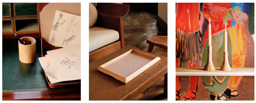 Esculpido em madeira local, preferencialmente carvalho e carpa, e esculpido à mão pelos renomados marceneiros da região de Les Vosges, cada objeto homenageia a beleza despojada do sul da França. Tudo é madeira, madeira bruta e sólida, usados para criar a coleção com o que fosse simples e nobre, como a Dior fez.