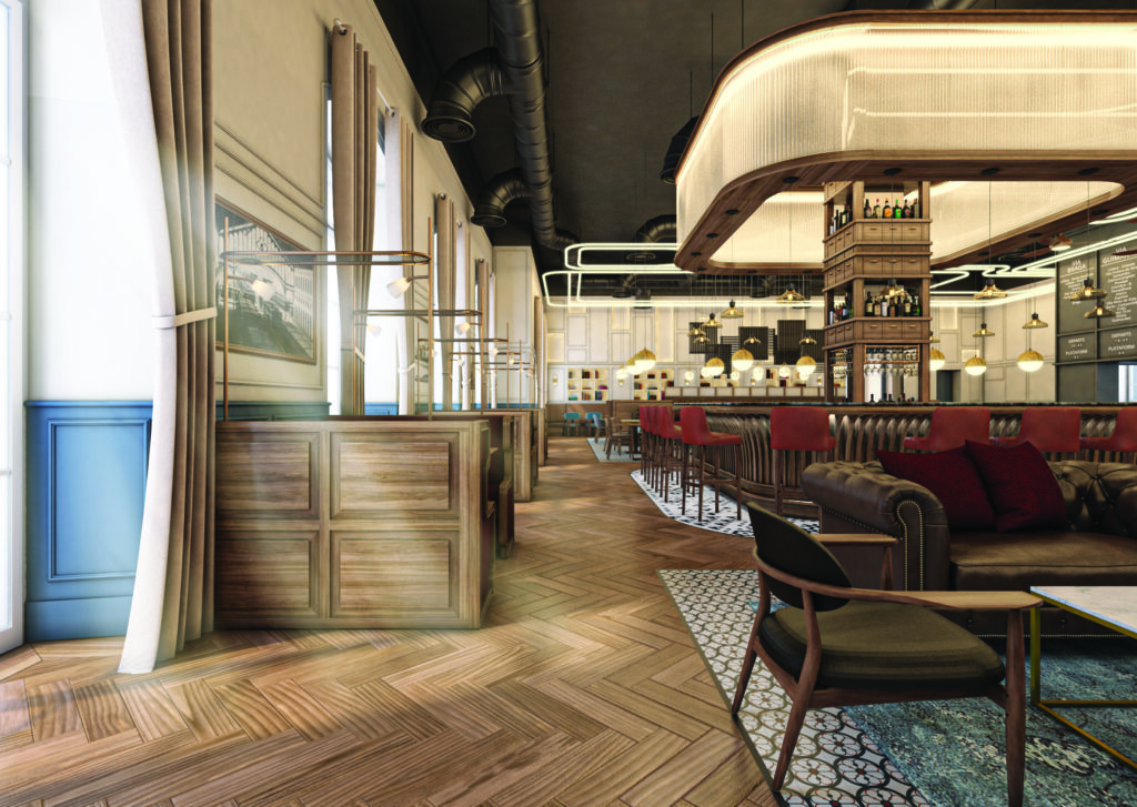 O salão funciona hoje como bar, restaurante e sala de estar e eventos, com 500 m2, com cozinha aberta e um bar central, que parece um vagão-bar de um trem. Foram investidos cerca de 12 milhões de euros no projeto de transformação do edifício, que hoje conta com 126 quartos e todas as facilidades de acolhimento.