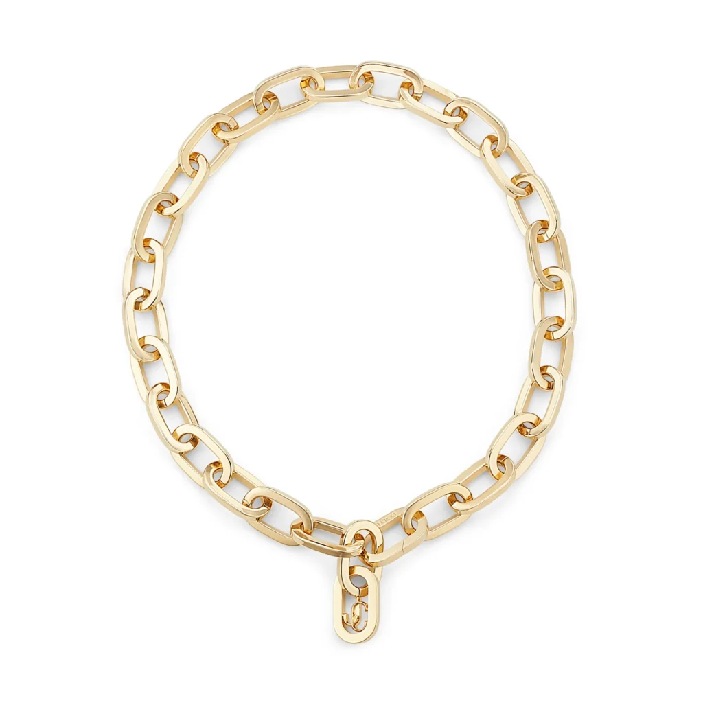 A coleção tem referências da bolsa “Bon Bon” da marca em toda a sua extensão, os colares de corrente apresentam o mesmo desenho de ajuste de comprimento e as pulseiras fazem eco à alça distinta da bolsa.