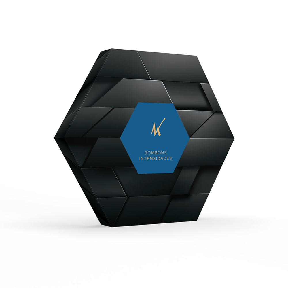 O segundo são os Bombons Intensidade, de 180g, uma caixa composta por 15 unidades recheadas com diferentes intensidades, sendo 5 de chocolate branco com recheio cremoso, 5 de chocolate ao leite com recheio cremoso e 5 de chocolate amargo com recheio cremoso.