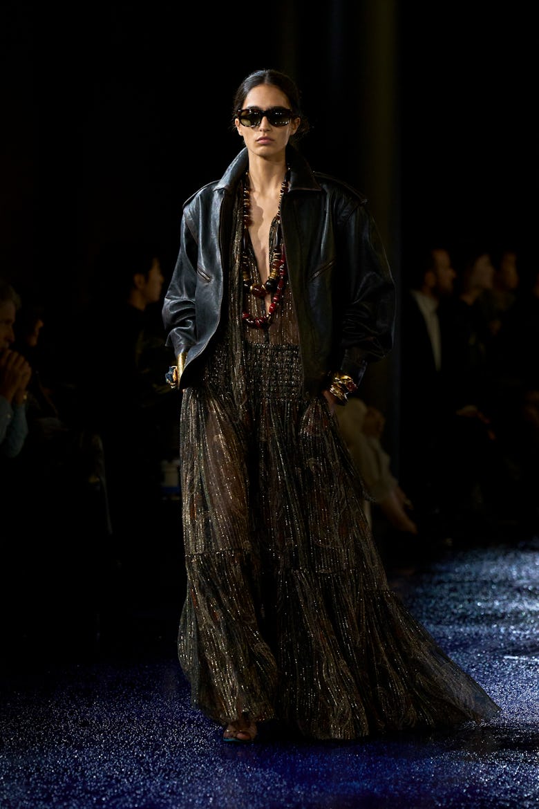 Ensinando sobre como se vestir de forma poderosa, destacando ternos andrógenos e trajes de noite ecléticos, a Saint Laurent apresentou sua coleção para a Primavera/Verão 2025 durante a Semana de Moda de Paris, sob orientação do diretor criativo Anthony Vaccarello.
