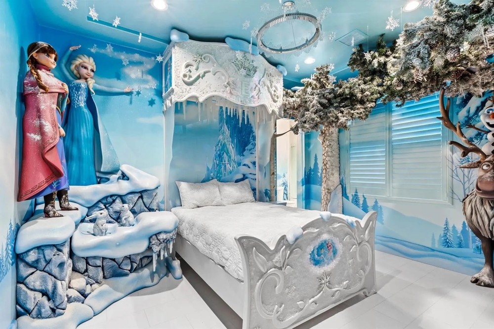 Disponibiliza sete suítes, algumas com temas exclusivos, incluindo um quarto Frozen com personagens em tamanho real e outro inspirado em Procurando Nemo. Conta também com um home theater inspirado em Star Wars. A residência ainda inclui um bar e sala de entretenimento, uma garagem para três carros e um local para carrinhos de golfe.