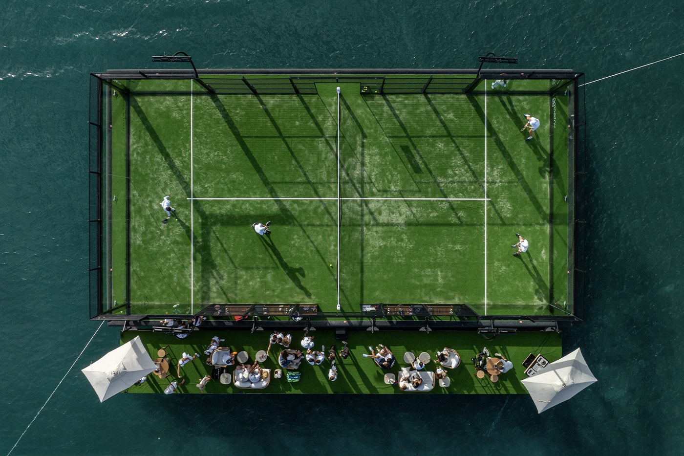 Esta novidade está localizada no Miami Harbor, na região próxima à icônica e luxuosa Fisher Island, ilha privada que é considerada um dos bairros mais ricos de todo Estados Unidos. A Quadra Flutuante de Padel foi projetada sob a visão de Felipe MacLean, CEO do Yntegra Group. Sua estrutura é feita de aço reciclado proveniente de materiais antigos de estaleiros. Livre de motores e baterias, a quadra se integra perfeitamente à paisagem natural, criando um ambiente tranquilo e único para a prática de padel.