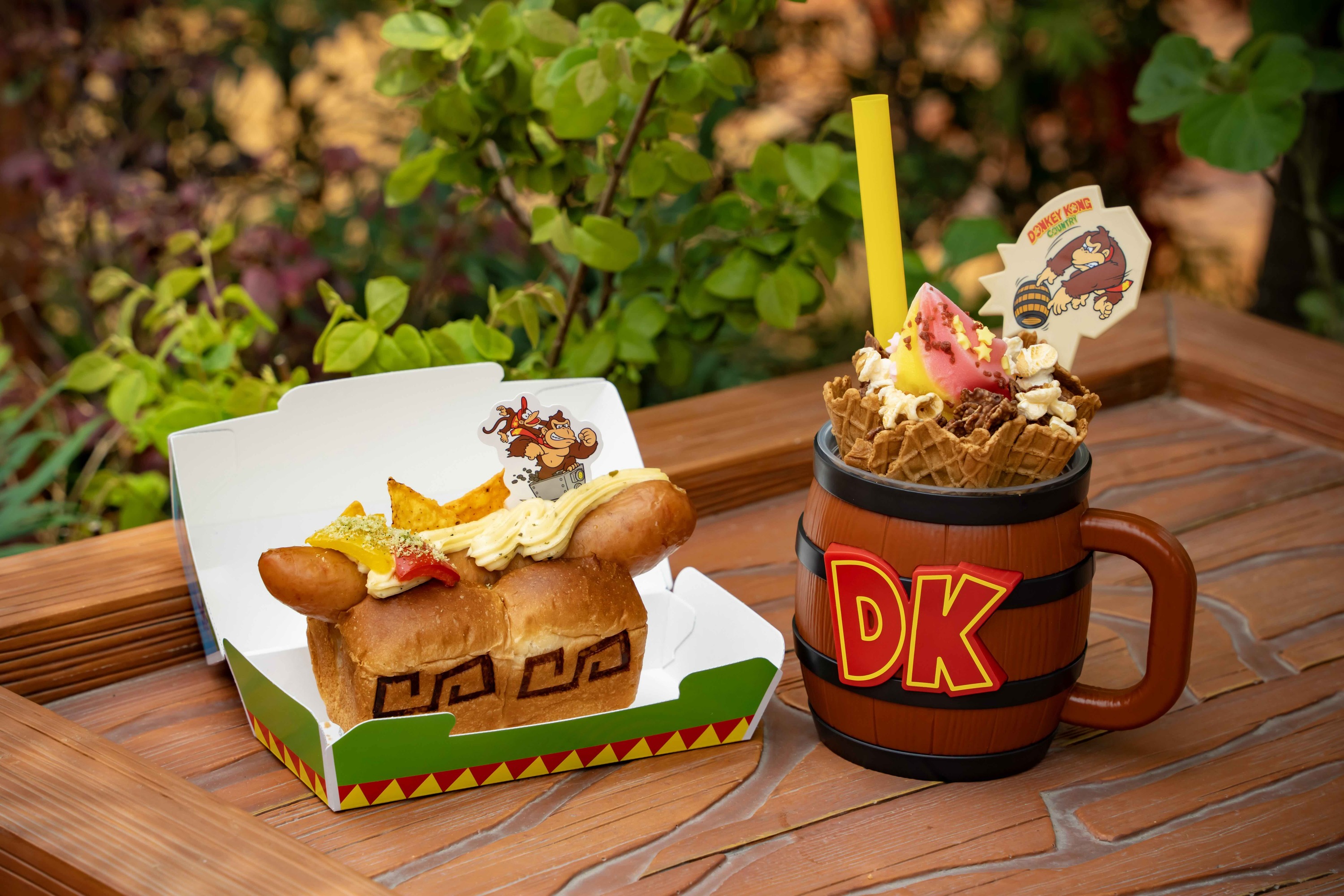 Outros destaques são a montanha-russa “Mine Cart Madness“, em que aventureiros “ajudam” os personagens Donkey Kong e Diddy Kong a proteger a banana dourada. Há também uma loja com itens temáticos, uma barraquinha de cachorro-quente e um quiosque de bebidas, o Jungle Shake Beats, que vende diferentes tipos de shakes em copos no formato de barril.