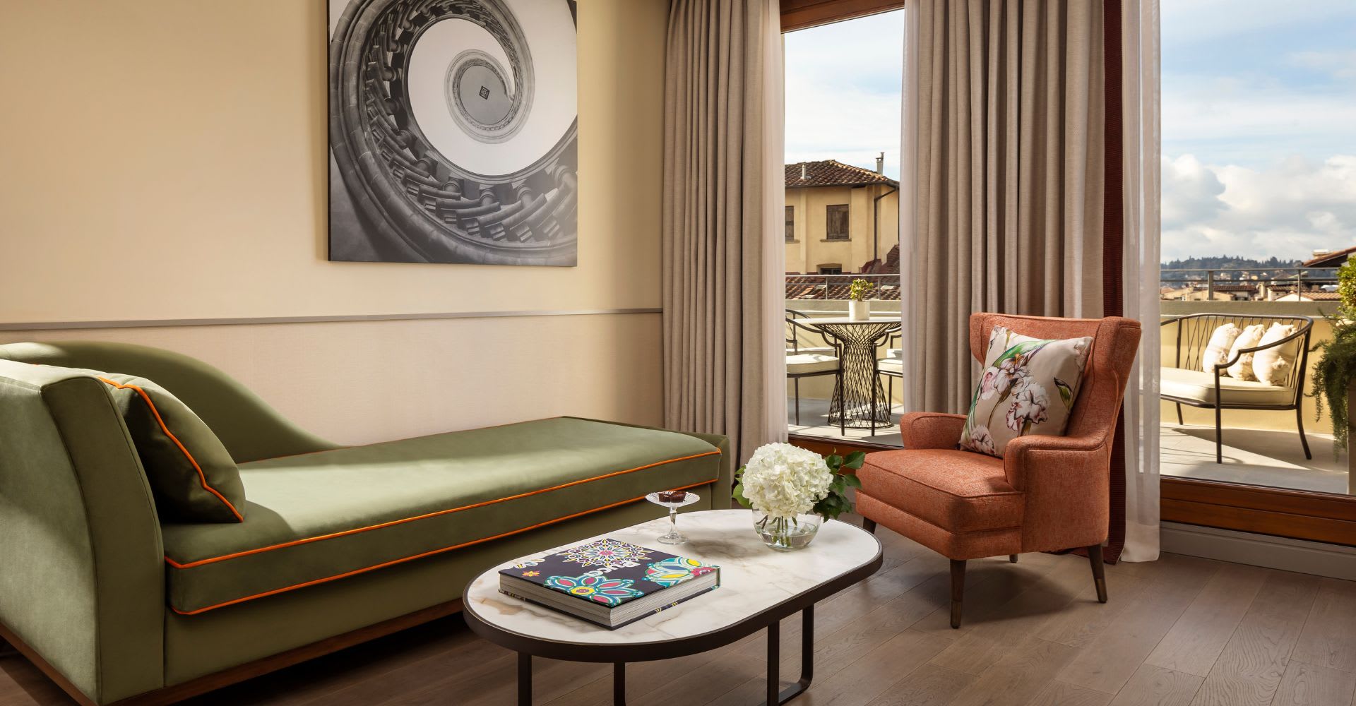 Disponibiliza 86 quartos, incluindo oito suítes, que combinam mobiliário autêntico de época e arte florentina com conforto e funcionalidade contemporâneos. Na gastronomia, o restaurante Terrae oferece uma viagem à cozinha toscana e italiana, liderado pela reconhecida chef executiva italiana, Iside de Cesare, que possui uma estrela Michelin, juntamente com o chef residente Salvatore Canargiu.