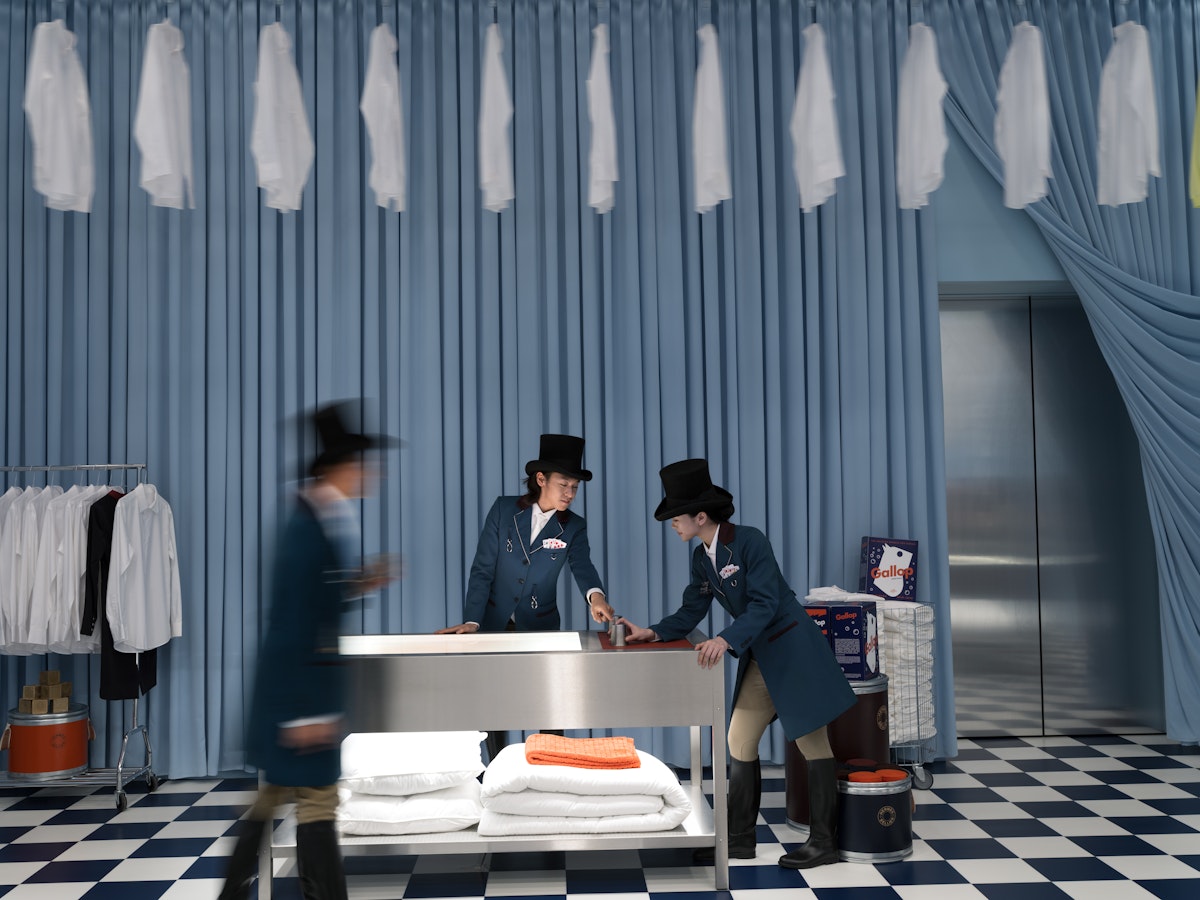 Nomeada como “Mystery at the Grooms”, a instalação foi montada no Píer 36, destacando os grooms, tratadores de cavalos que fazem parte da herança da Hermès desde 1837. Ao entrar na instalação, o público é guiado por uma voz peculiar: o detetive Sr. Honoré, uma referência direta à primeira loja da Hermès na Rue du Faubourg Saint-Honoré, em Paris. Em cada uma das seis salas temáticas, os participantes têm sete minutos para localizar cinco cavalos camuflados entre cenouras, fardos de feno, travessas de prata e até roupas em uma lavanderia cenográfica.