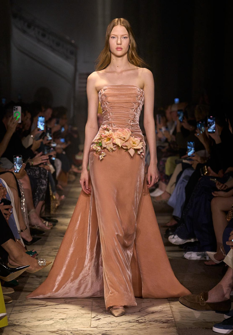 Elie Saab fez da estrutura do espartilho a base para vestidos de silhueta escultural, sendo revestidos de veludo, confeccionados com tecidos de brilho metalizado ou em cascatas de renda, conferiram à mulher um efeito sensual, celebrando o corpo com uma dose de sedução.