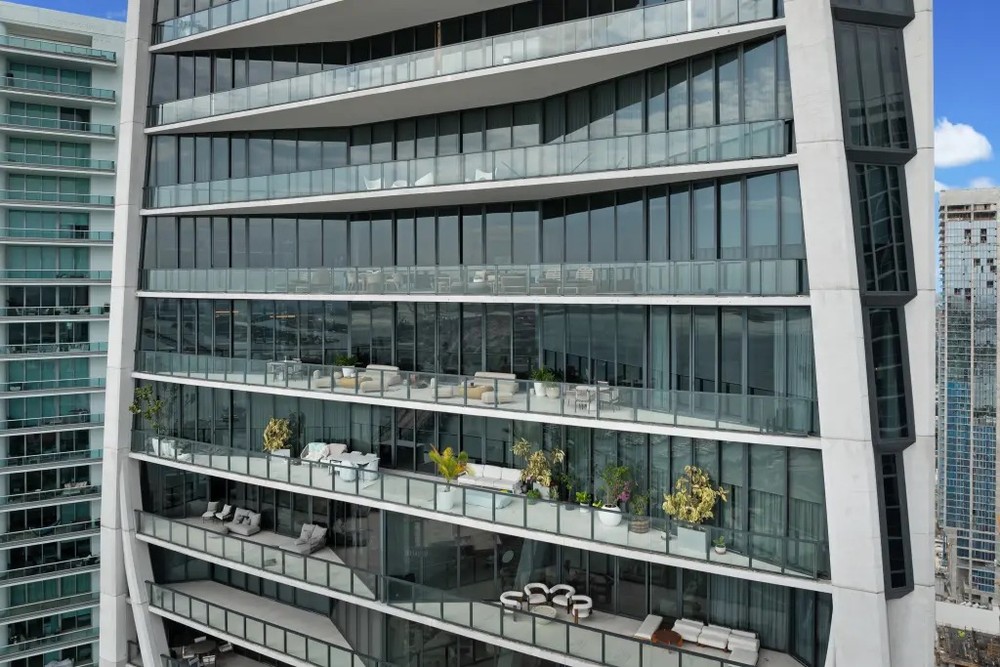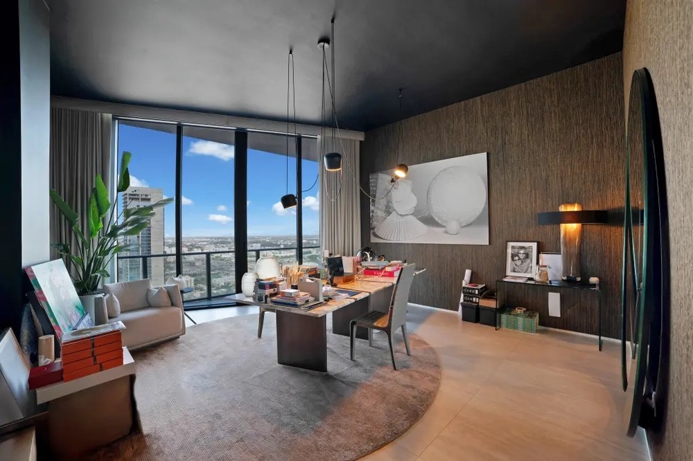 A penthouse, que toma o andar inteiro, tem 960 metros quadrados e um pátio de 111 metros quadrados, com vistas panorâmicas da Baía de Biscayne, da cidade e do Oceano Atlântico. Em seu interior, estão distribuídos cinco quartos, seis banheiros, um lavabo, um cinema privativo, um bar, closets individuais, uma adega e sistemas de audiovisual personalizados.
