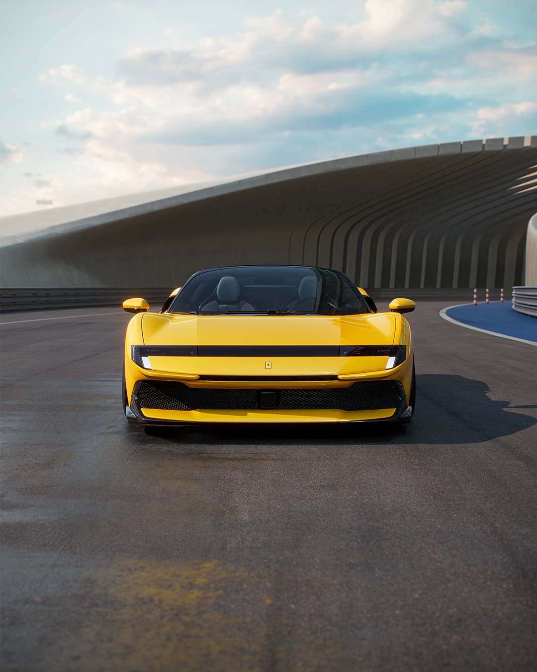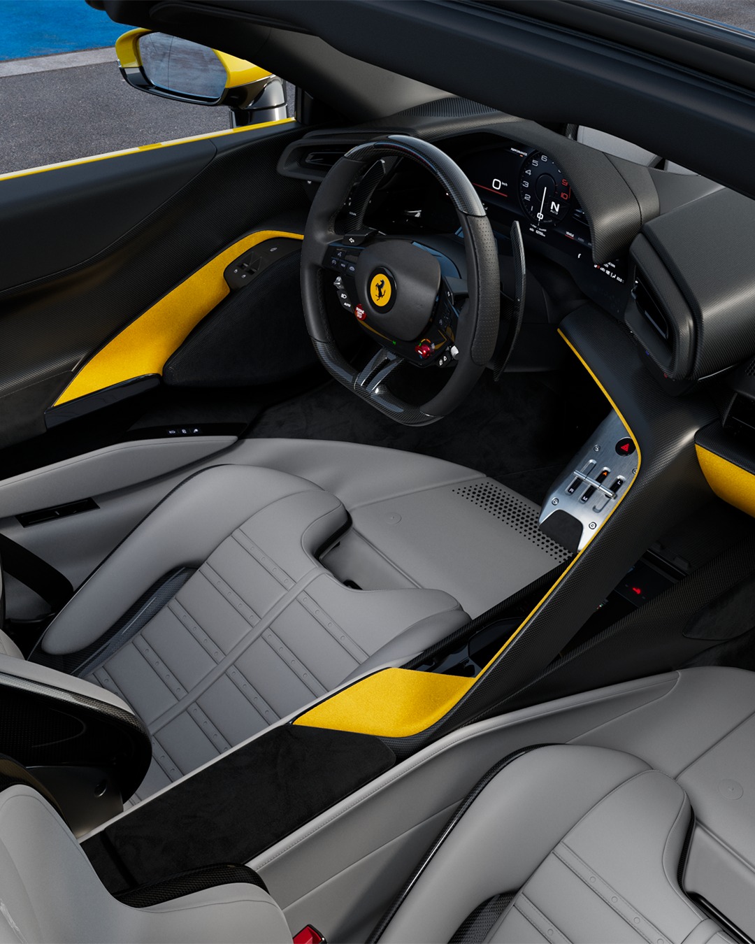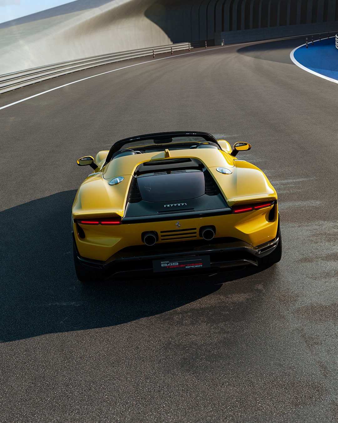Nomeado como 849 Testarossa Spider, este novo modelo é equipado com um motor V8 biturbo central traseiro, que entrega 830 cv, além da potência de três motores elétricos, totalizando 1.050 cv. Seu teto retrátil em questão é um teto rígido retrátil, que pode ser aberto ou fechado em 14 segundos, mesmo em movimento. Atenção especial foi dada à aerodinâmica ao redor da cabine, com um “apanhador de vento” que deve manter os cabelos no lugar em alta velocidade.