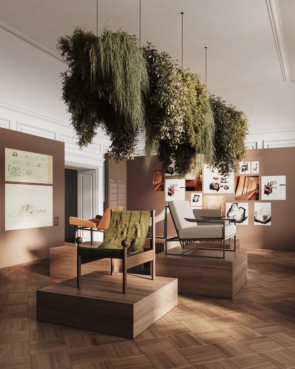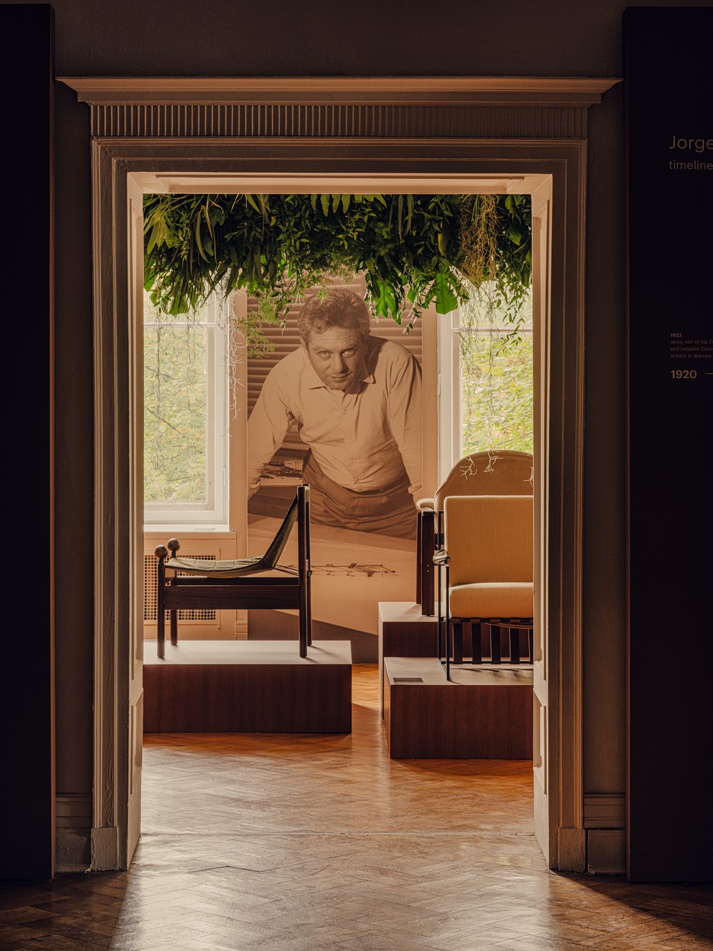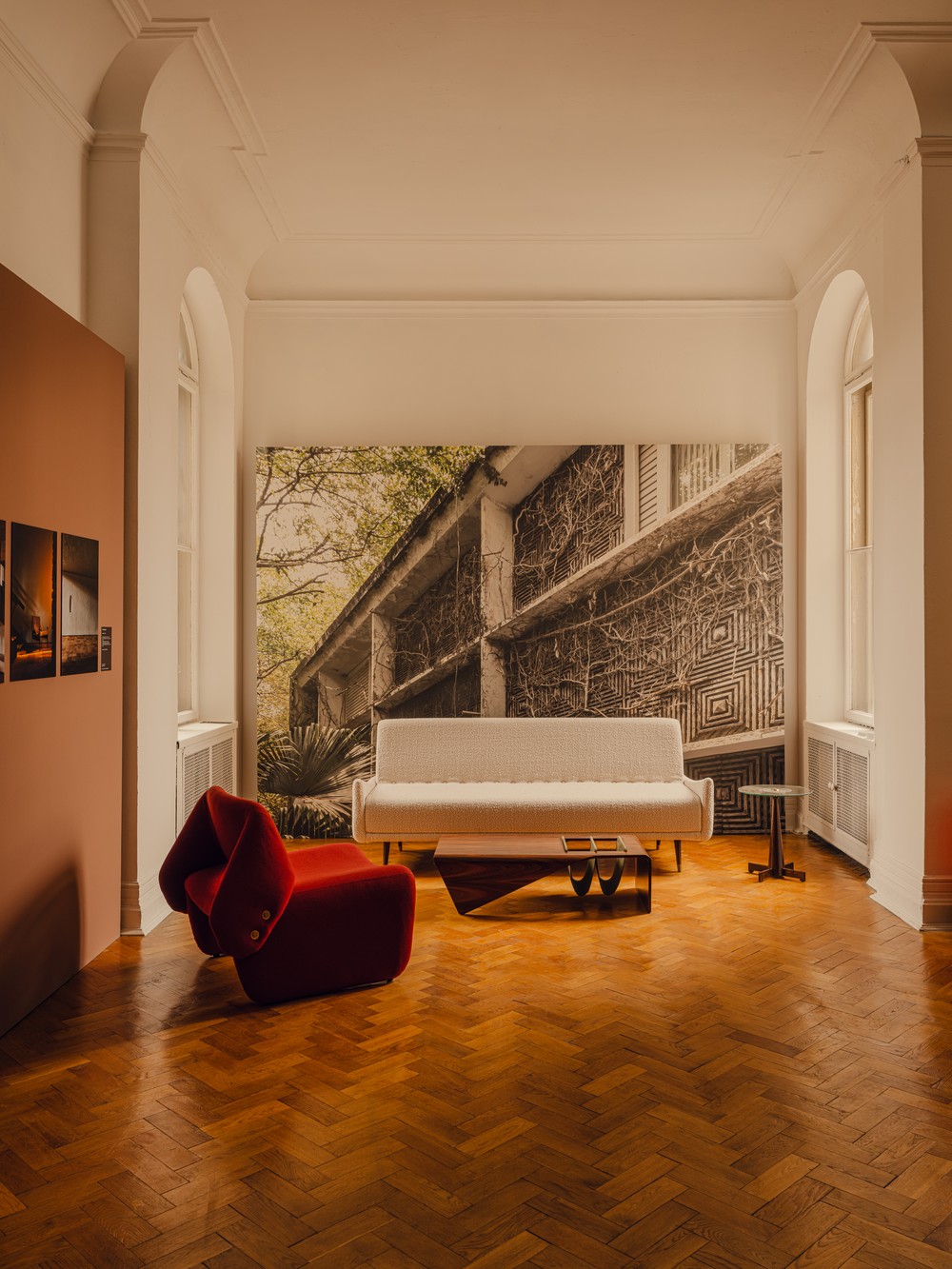 Nomeada como Jorge Zalszupin: Warsaw – São Paulo – Warsaw, esta nova exposição promove uma retrospectiva através de um percurso poético, reunindo mais de 25 peças de mobiliário, 40 desenhos originais e uma seleção de fotografias que evidenciam a trajetória do arquiteto-designer. No primeiro andar do casarão, sete ambientes de pé-direito alto acolhem móveis icônicos e textos de parede em tons terrosos, emoldurados por plantas tropicais.