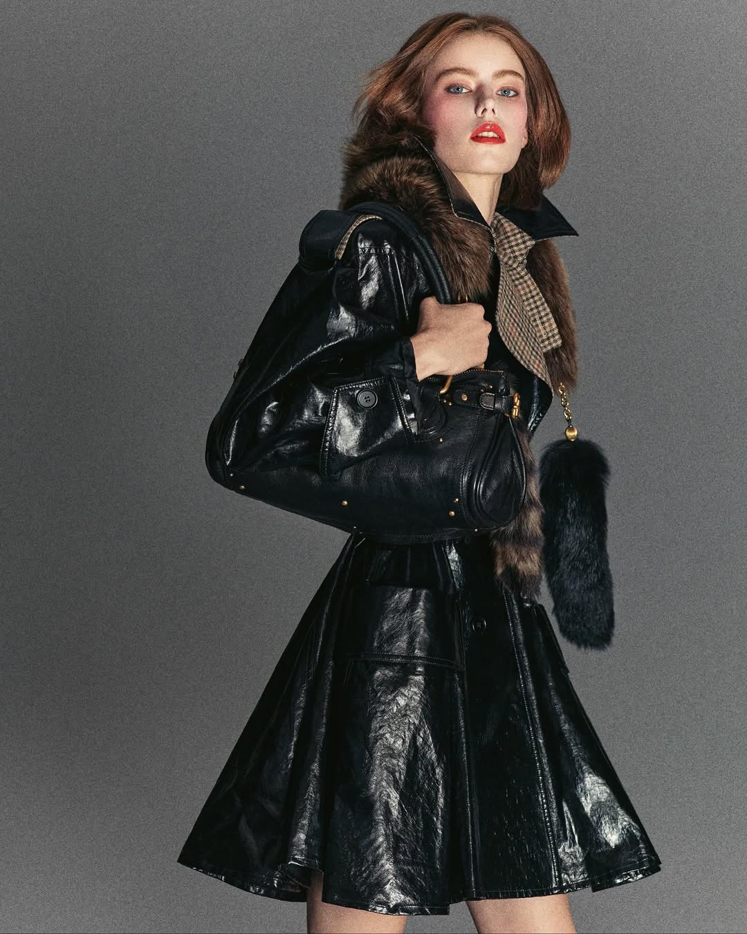 Antes da campanha, a bolsa Paddington foi reintroduzida na passarela de Inverno 25, onde foi vista no braço de Alexa Chung, assim como em outras modelos. Sua idealização em couro curtido ao vegetal oferece uma pátina autêntica para um visual mais vivido.