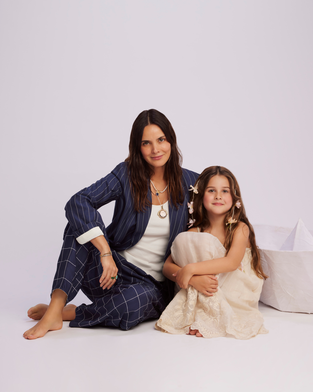 No drop MINI, os elementos da linha principal são traduzidos em vestidos com rendas e entremeios delicados que criam um elo com as peças de adulto pensadas para criar memórias únicas entre mãe e filha, enquanto estampas de poá trazem um toque divertido ao lado do mood navy, explorado com cores e detalhes gráficos em vestidos e conjuntos.