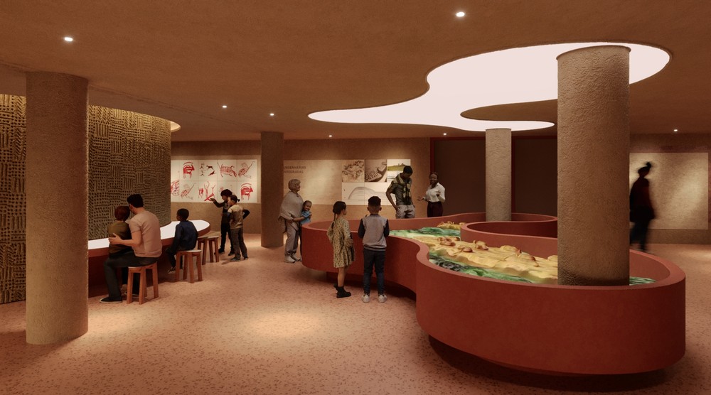 Assinado pelos escritórios Guá Arquitetura e be.bo., o espaço cultural contempla 3.100 metros quadrados, com curadoria de Francy Baniwa, Joice Ferreira e Helena Lima. O térreo, com 2.000 metros quadrados, concentra o percurso expositivo principal, o foyer de recepção e a loja. Já o mezanino, de 1.100 metros quadrados, abriga a sala de exposição temporária, uma sala multiuso e o espaço criativo, pensado para receber ativações culturais diversas e abrigar usos flexíveis.