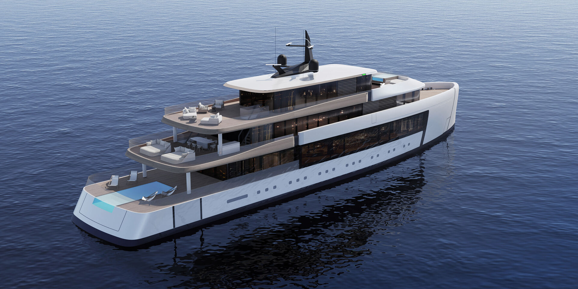 Com a proposta de surpreender pelo design e sendo descrita como uma “arquitetura sobre a água”, o estúdio de design britânico Concepthull Studio revelou sua nova embarcação com direito a convés que parece flutuar, apresentada durante o Monaco Yacht Show.