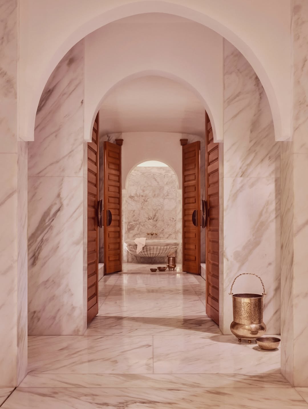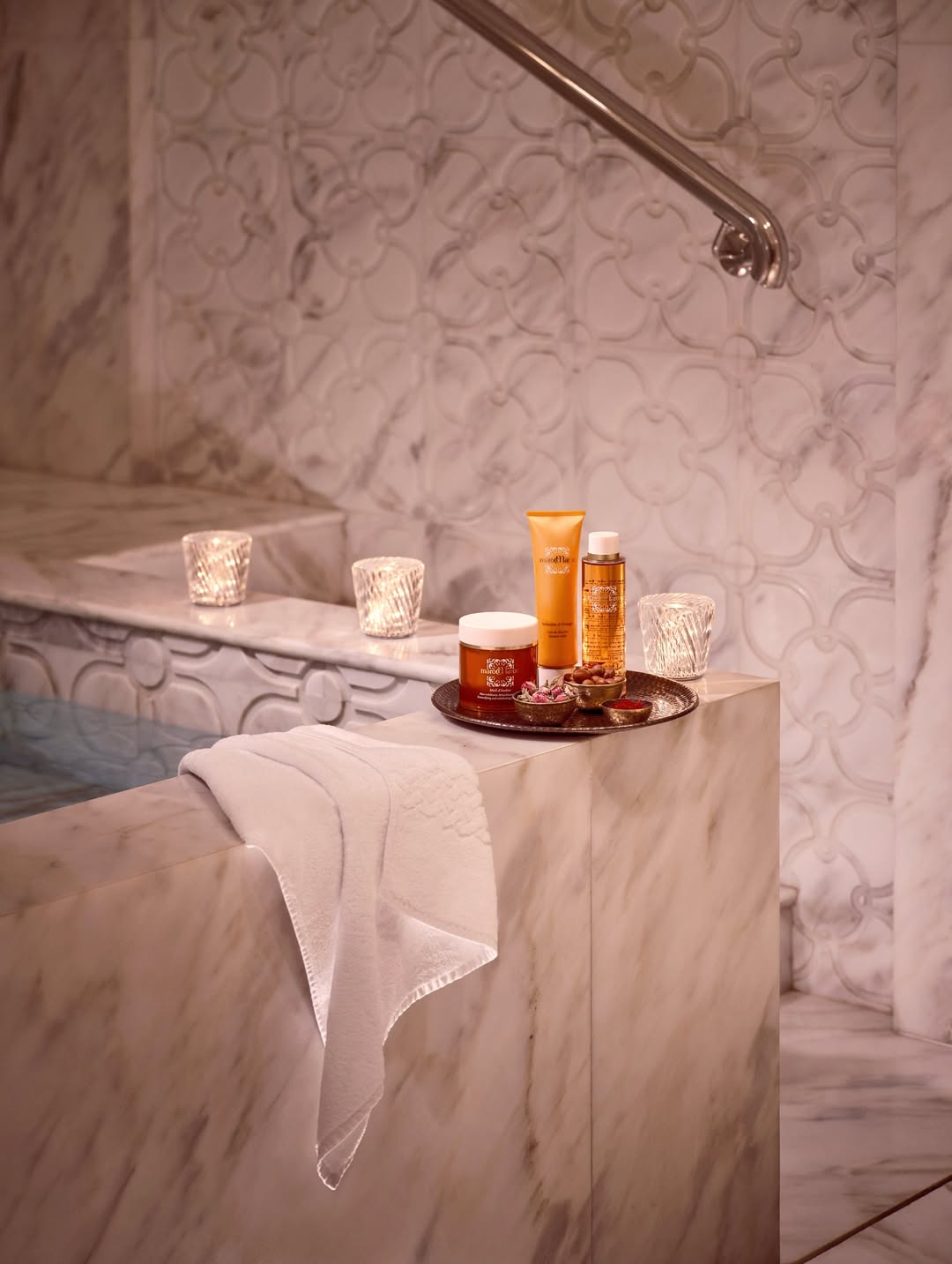 Um destaque é o hammam em estilo marroquino, que une itens só encontrados no Marrocos, como a argila ghassoul vinda da Cordilheira do Atlas, além das rosas da região de Kalaat M’Gouna e o açafrão de Taliouine, duas cidades a mais de 500 km ao sul de Casablanca, na direção do Saara. Também oferece a opção de tratamentos corporais e faciais com protocolos avançados e importados, e até alternativas luxuosas como o programa holístico Escale Dorée com ouro 24k.