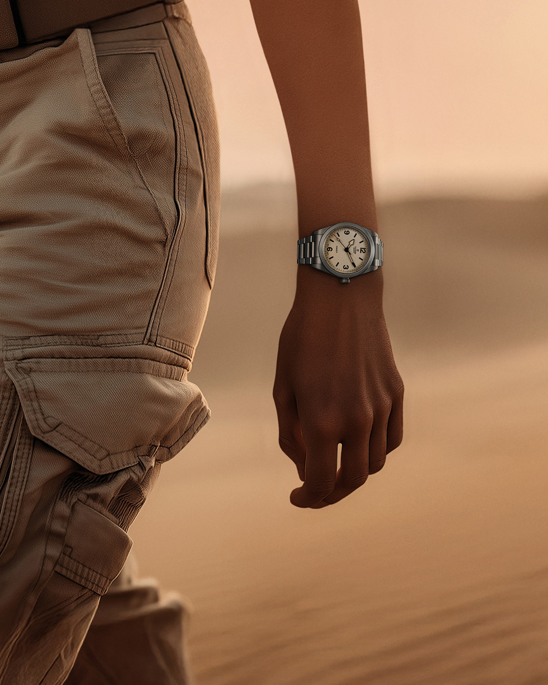 Agora vem com caixa com acabamento escovado e acetinado em aço, nos tamanhos 36 e 39 milímetros e luneta fixa em aço. Seu mostrador é côncavo preto ou “Dune white” mate granulado e os marcadores das horas trazem revestimento Super-LumiNova.