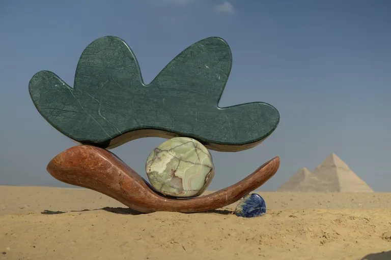 Registrando o movimento do dia através de mudanças de translucidez e tonalidade sob o calor e a luz, tornando a obra uma colaboração com a própria Terra, no Planalto de Gizé, três composições de pedra em grande escala dialogam com o deserto, onde a instalação temporária Ecos do Infinito, obra da designer e diretora de arte Alex Proba e da empresa de pedra natural SolidNature, faz parte de “For Forever is Now 05” (até 6 de dezembro de 2025), a quinta edição anual da exposição de arte ao ar livre junto às Pirâmides, com curadoria da Art D’Égypte.