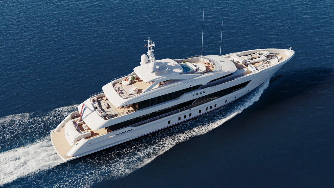 Nomeada como Frida, esta nova embarcação destaca-se com um layout espaçoso que inclui um salão principal amplo e iluminado no convés principal, um lounge panorâmico no convés superior, seis cabines de hóspedes e sete cabines no total para a tripulação.