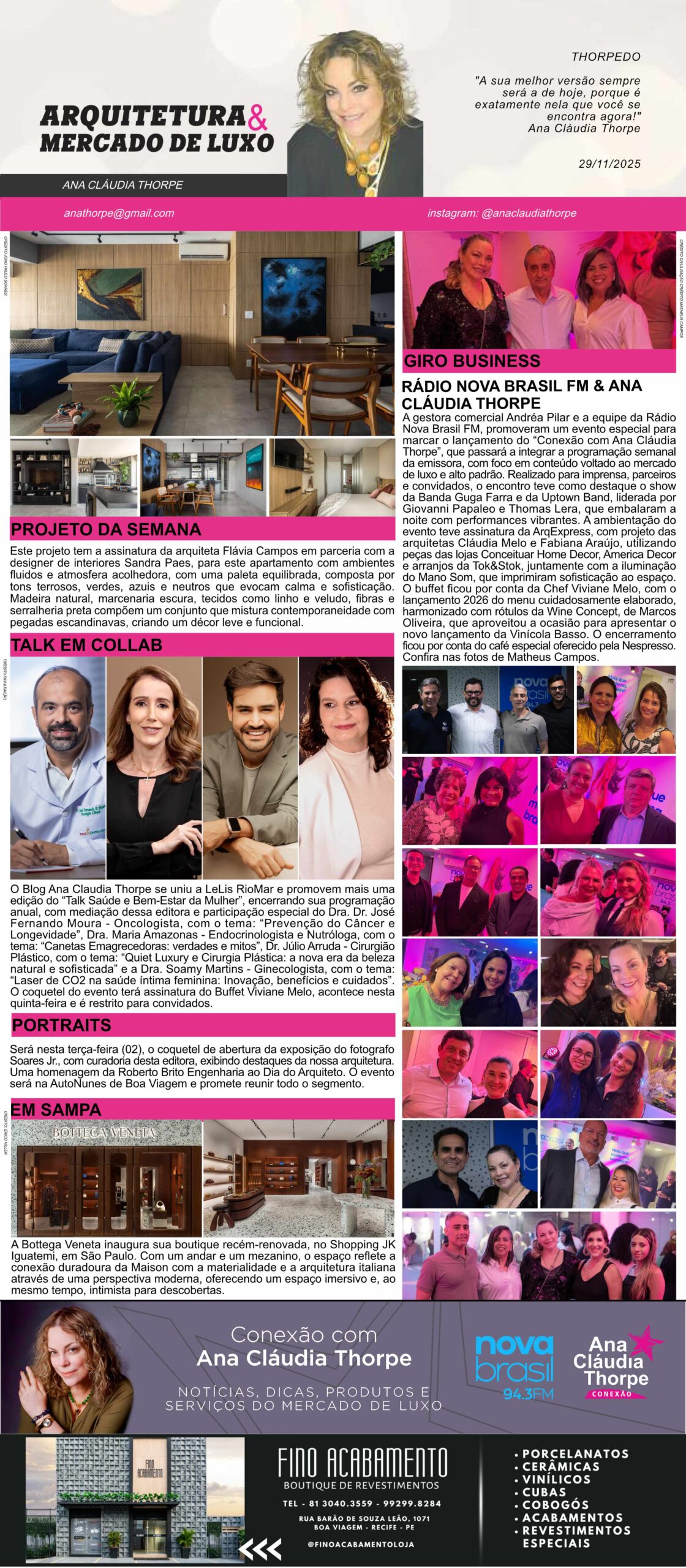 Coluna Coluna Arquitetura & Mercado de Luxo por Ana Cláudia Thorpe 29/11/2025 / Comentários desativados em Coluna Arquitetura & Mercado de Luxo por Ana Cláudia Thorpe Para download da coluna, clique aqui.