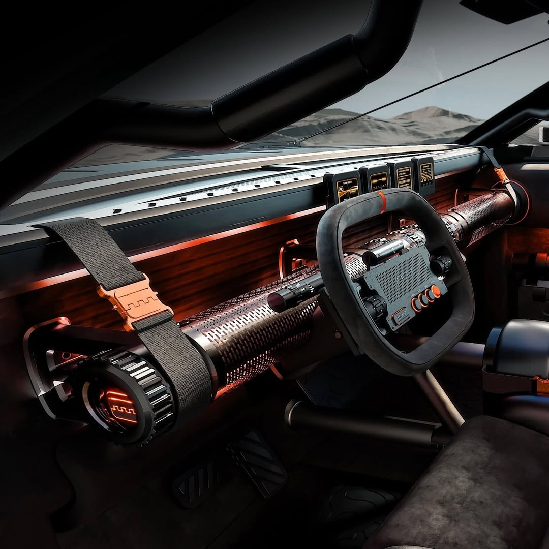 Placas de proteção, proteção contra vegetação para a cabine e uma plataforma no teto com faróis auxiliares no estilo pixel característico da Hyundai contribuem para o visual utilitário. Detalhes conceituais inteligentes, como uma câmera de ré que também funciona como lanterna removível, reforçam a abordagem funcional. Por dentro, o design é ainda mais minimalista. O elemento cilíndrico iluminado no painel e os apoios laterais dos bancos remetem às formas utilitárias e luxuosas dos trabalhos de Virgil Abloh com a Maybach. O painel inclui um alto-falante Bluetooth removível, enquanto componentes como kits de primeiros socorros e um extintor de incêndio também se encaixam perfeitamente na cabine. Com acabamento em Dune Gold Matte – inspirado no litoral californiano – o carro-conceito foi criado no Centro de Design e Tecnologia da Hyundai em Irvine.