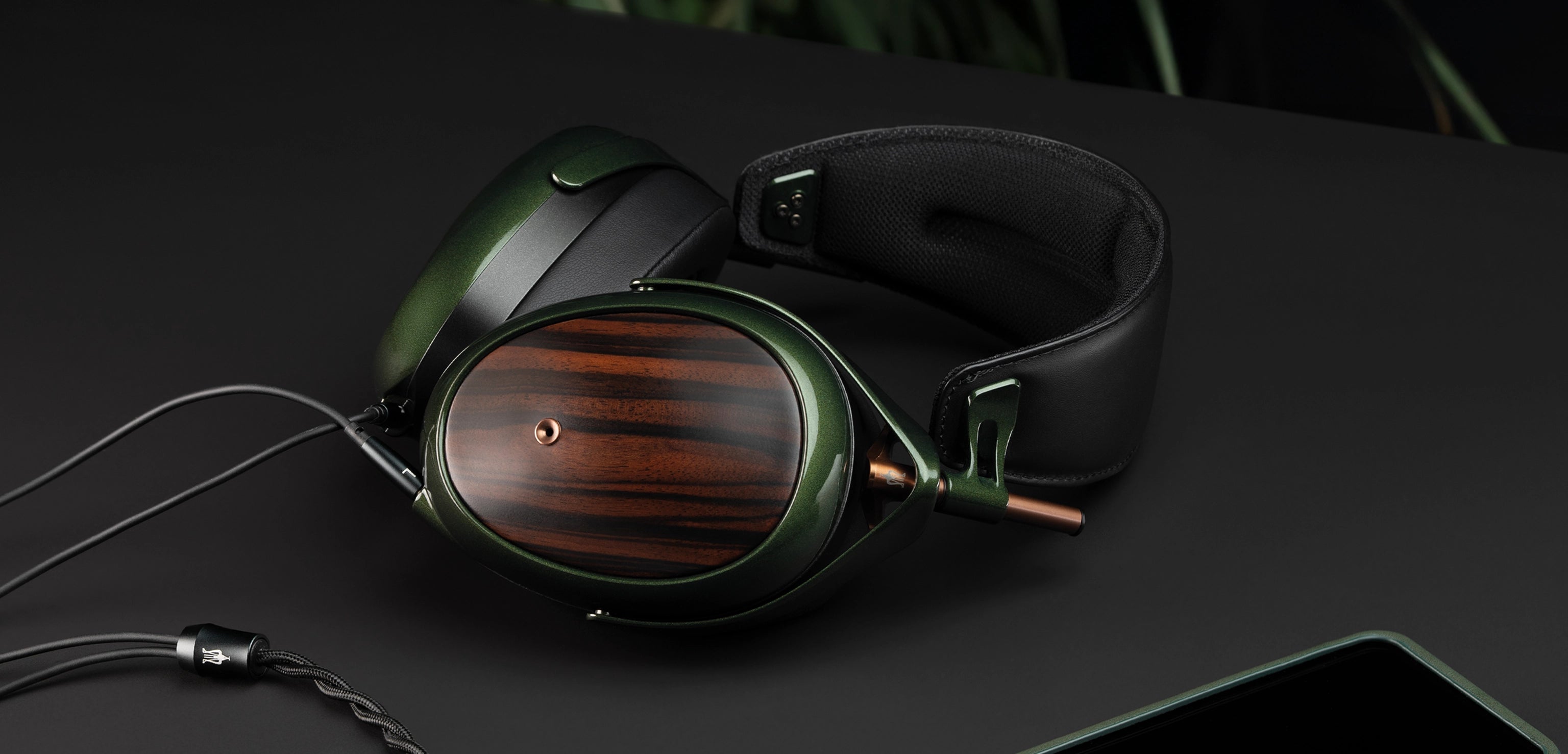 A própria estrutura é feita de magnésio para leveza e resistência. A pintura verde exclusiva – aplicada em quatro camadas – representa uma bem-vinda mudança em relação ao domínio do preto, prata e branco no universo do áudio, enquanto o uso da madeira Macassar garante que não haverá dois pares exatamente iguais.