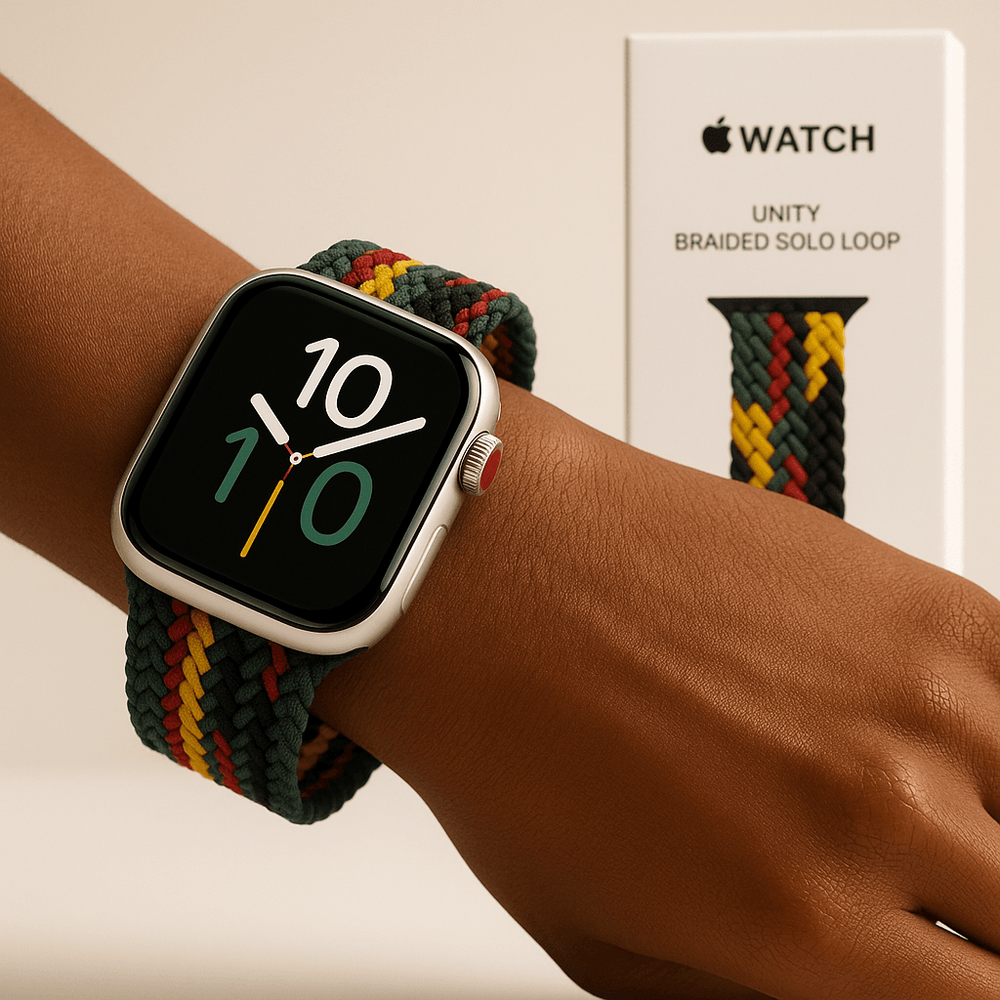Nomeada como Unity Connection Braided Solo Loop, esta novidade foi desenvolvida por criativos negros e aliados dentro da própria empresa, trazebdi como principal inspiração as cores da bandeira pan-africana: vermelho, verde e preto. Segundo a Apple, o conceito da pulseira está ligado à ideia de conexão entre pessoas e entre culturas, mensagem central da campanha deste ano.
