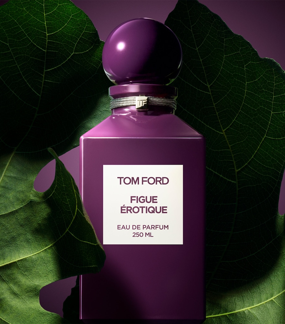 Sua base traz açúcar mascavo, ylang-ylang, vetiver, patchouli e benzoína, criando profundidade amadeirada e balsâmica que reforça o caráter erótico e sofisticado da fragrância. Já o frasco acompanha a propsota de tons escuros e acentos violetas evocam a polpa do figo maduro e o contraste entre luz e sombra.